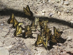 More butterflies congregated around a sweet spot.