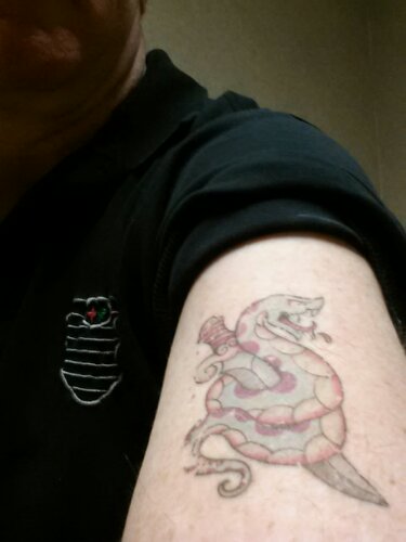 My old tatt Posted on 2013/09/11 by treetrunkrick Tagged happiness, technology Leave a comment Walmart special fades but is fun while it lasts. Temporary tattoos make body art experimentation more exciting to me…an everchanging canvas until I get the flexible screen underskin electroluminescent display implants later this century. Share this: Click to share on Facebook (Opens in new window) Facebook Click to share on X (Opens in new window) X Like Loading... Related