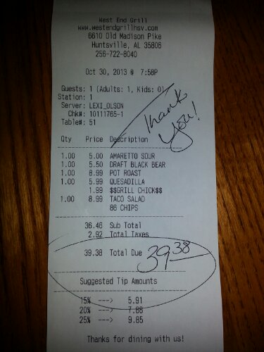 Dinner for three Posted on 2013/10/31 by treetrunkrick Tagged business, exercise, food, happiness Leave a comment Abi texts while waiting for dinner at West End Grill. Thx to her for dance lesson and Lexi for restaurant service: Share this: Click to share on Facebook (Opens in new window) Facebook Click to share on X (Opens in new window) X Like Loading... Related