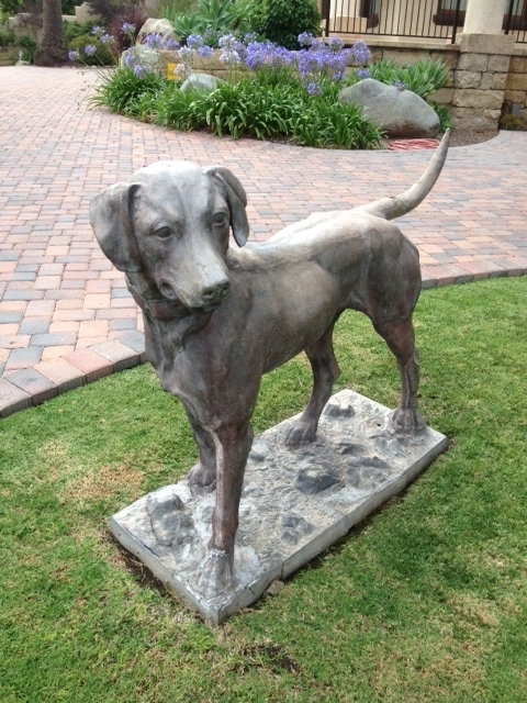 Across one street from the bench is this locally-famous statue of a large dog, about which many stories are told (most of them probably untrue.)