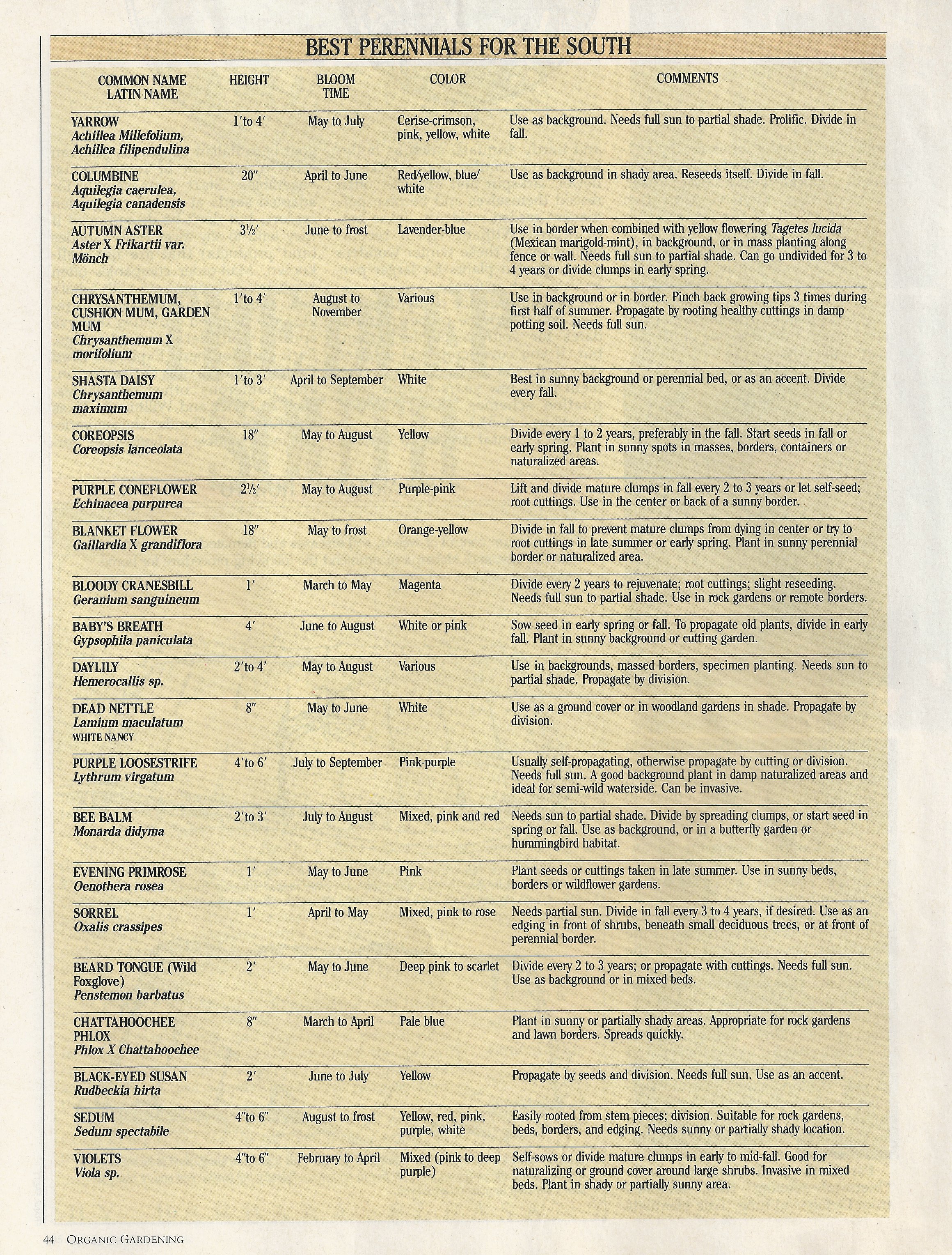 Bloom List-Plants in bud or flower